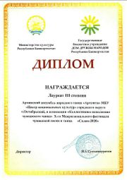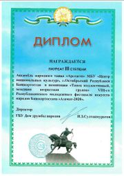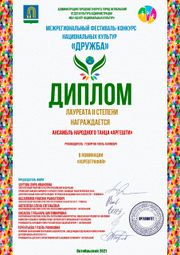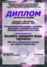 21:09, 7 марта 2023 7-АРГЕШТИ Диплом лауреат 2 степни фестиваль-конкурс Дружба 2021.jpg (файл) 483 КБ