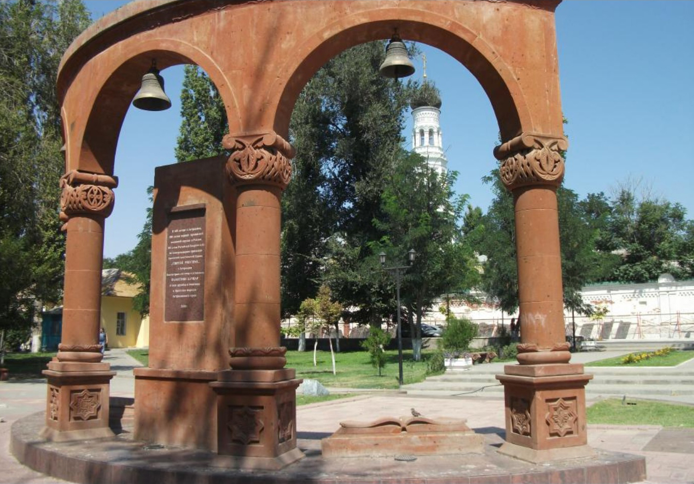 Файл:Хачкар и трехарочная стела в парке «Армения» (Астрахань) 8.jpg